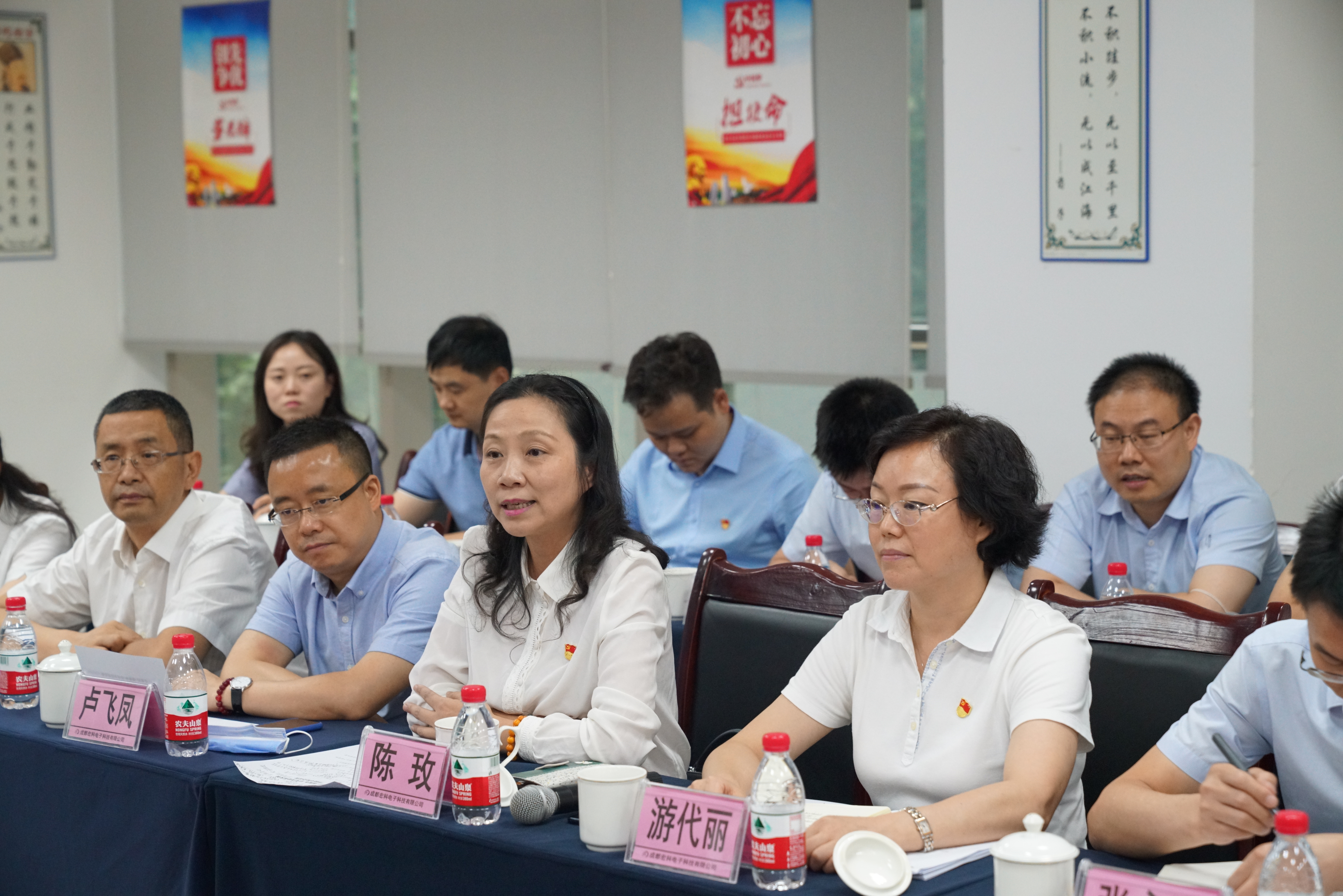 7月7日下午,省财政厅资产管理处支部,省国资委办公室支部、财评处支部,川投集团财金管理支部赴宏明电子开展支部结对共建活动。省国资委党委委员、副主任游代丽、办公室副主任张永海、财评处副处长邹鑫,省财政厅资产管理处副处长陈玫、卢飞凤,川投集团副总会计师、资金财务部部长黄劲等领导出席支部共建活动。