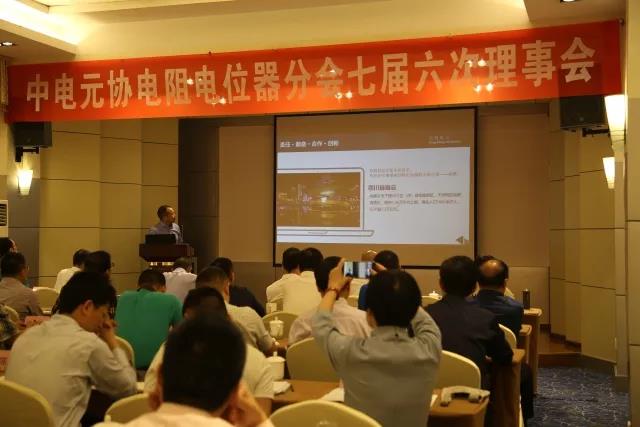 2018年5月4日,由成都宏明电子股份有限公司承办的中电元协电阻电位器分会第七届六次理事会在成都举行。协会名誉理事长温学礼、理事长姜海洋、主任关银贵、秘书长辛钰、宏明电子总经理刘尊述以及来自全国32家理事单位50余位代表出席了本次会议。会议由协会理事长姜海洋主持。