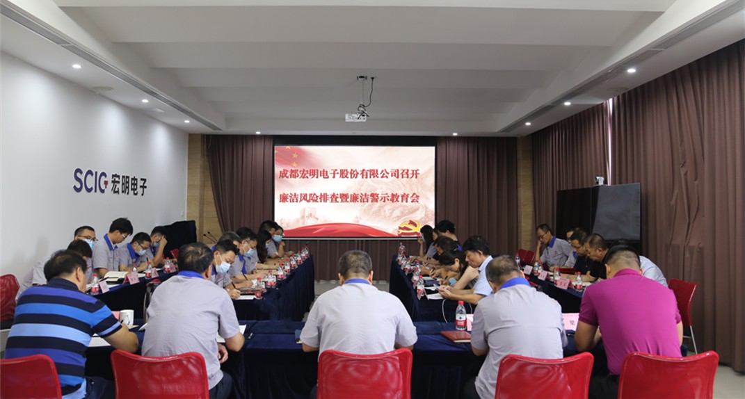 8月19日,成都宏明电子股份有限公司召开廉洁风险排查暨廉洁警示教育会。公司党委书记、总经理刘尊述及领导班子成员、所属公司及各部门负责人参加会议。公司党委副书记、纪委书记、工会主席王永林主持会议。